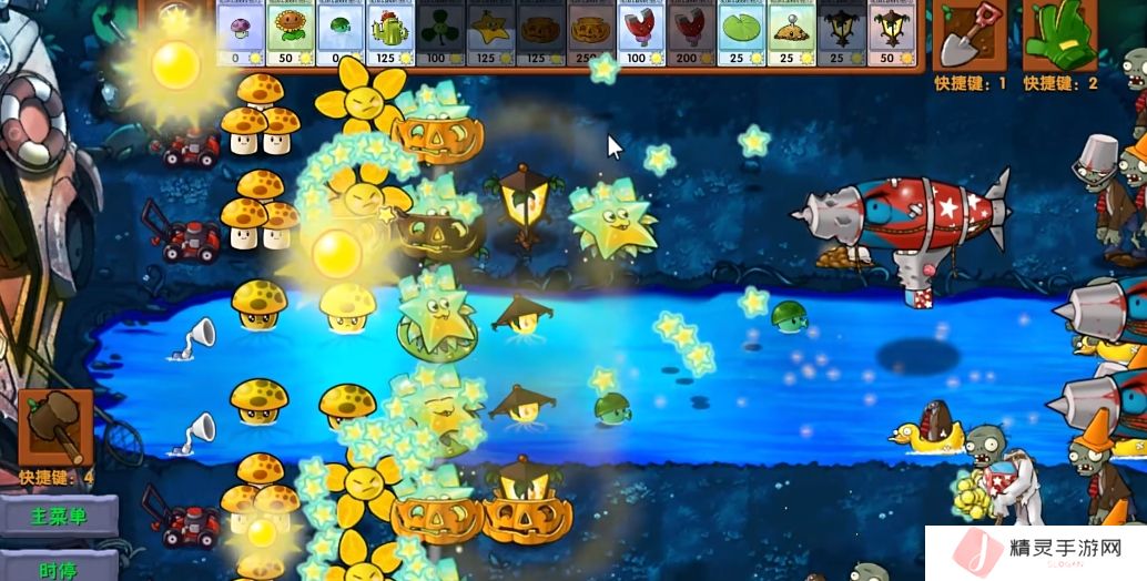 5、海星射手的星星是四散攻击的,有了仙人掌杨桃可以帮助星星回来向僵尸方向进行攻击。