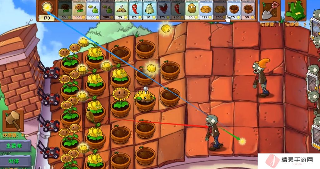 经典塔防模式飞行僵尸无视路线前进,也不会啃咬在路线以外的植物