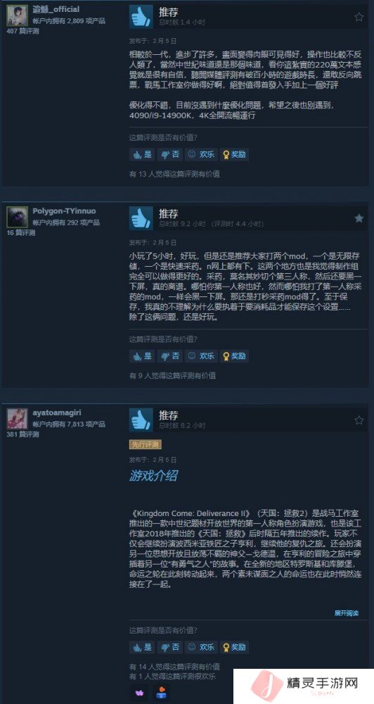 此外,也有大量玩家发表了类似的看法,比如“开年神作”,“就是这个味儿”,“优化演出真的太牛”,“华丽升级的中世纪拯救之旅”。