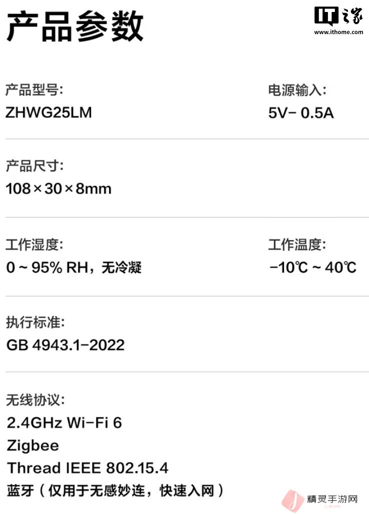 目前,该网关在京东售价 159 元,本站附参数表如下: