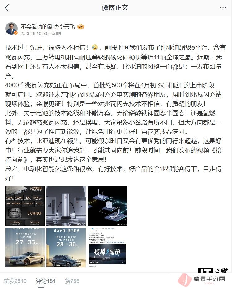 王传福还宣布,比亚迪将开放闪充站 / 桩有关技术,并喊话“欢迎大家一起来建”。