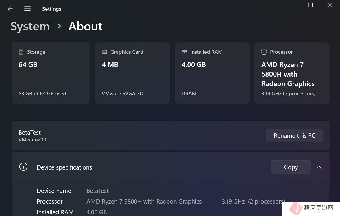 此外针对设置应用新增系统信息卡片,在“设置 > 系统 > 关于”页面新增硬件概览卡片,显示内存、存储和 GPU 等关键参数。